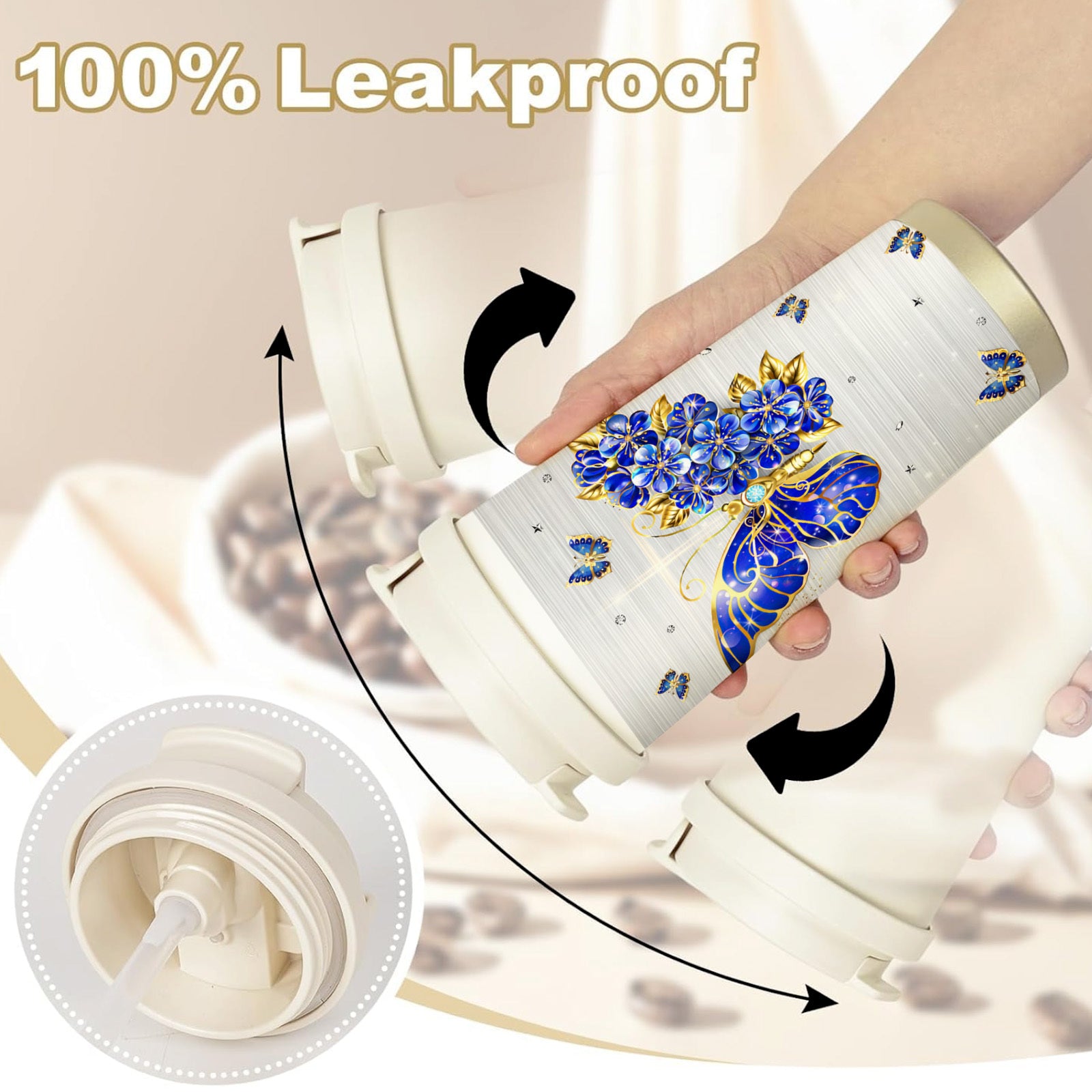 1pc Mikenda 1pc 18oz Stainless Steel Insulated Tumbler with Straw & Lid - Scripture Cup Suitable for Hot/Cold Drinks, 12H Hot & 24H Cold Retention, Christian Travel Mug with Verses, Blue Floral Design Gift for Women, Faith Gift