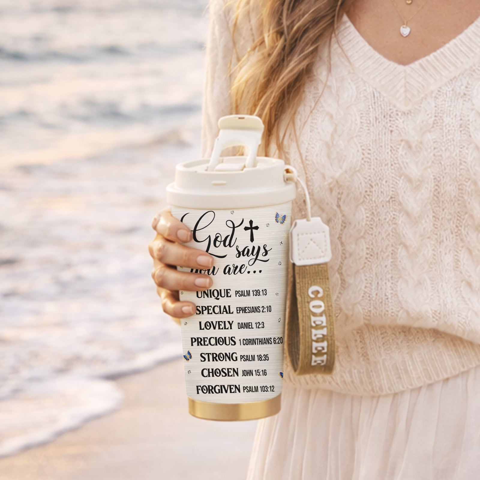 Start your day encouraged and refreshed with this beautiful 18oz insulated scripture tumbler. Made from durable 304 stainless steel, this travel mug keeps drinks hot for up to 12 hours and cold for up to 24 hours perfect for busy mornings, workdays, or travel.