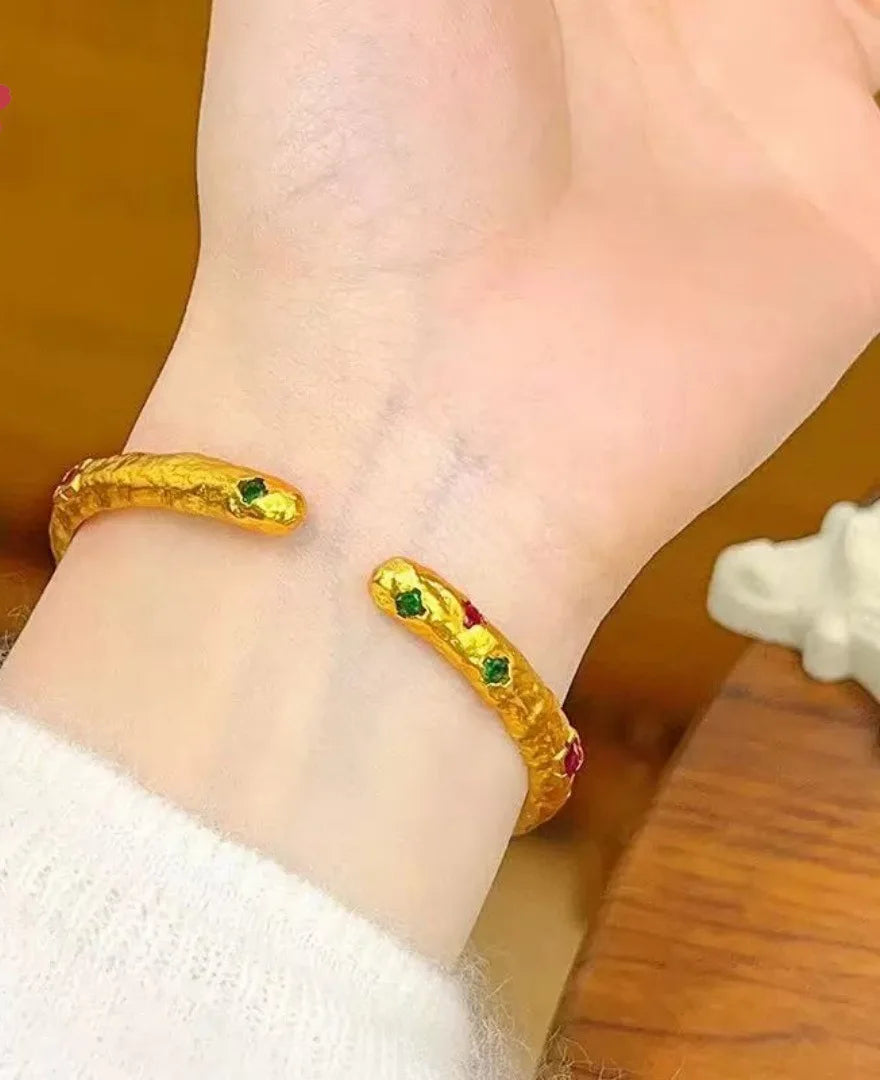 Diamond-Studded Hammered Shiny Open Bracelet Women 24K Gold AU999 - Sparkly diamonds, unique hammered, easy open