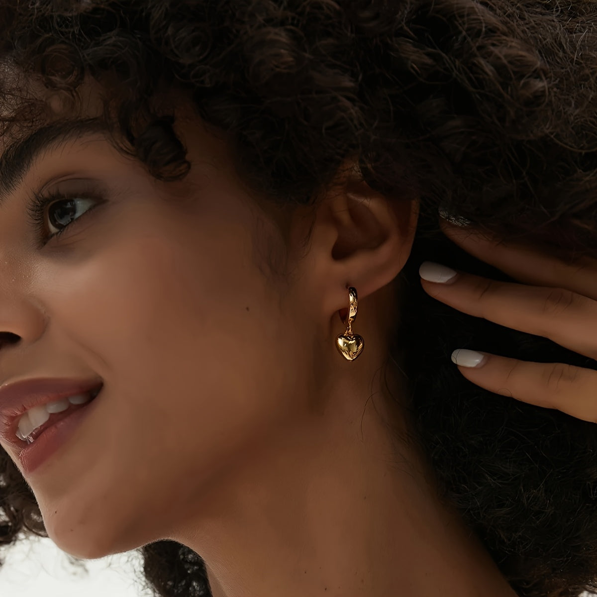 These elegant heart-shaped earrings are crafted from high-quality 304 stainless steel with a golden finish for a timeless, everyday look. Designed to be hypoallergenic and resistant to fading, they’re comfortable to wear all day and easy to style for both casual outfits and special occasions.