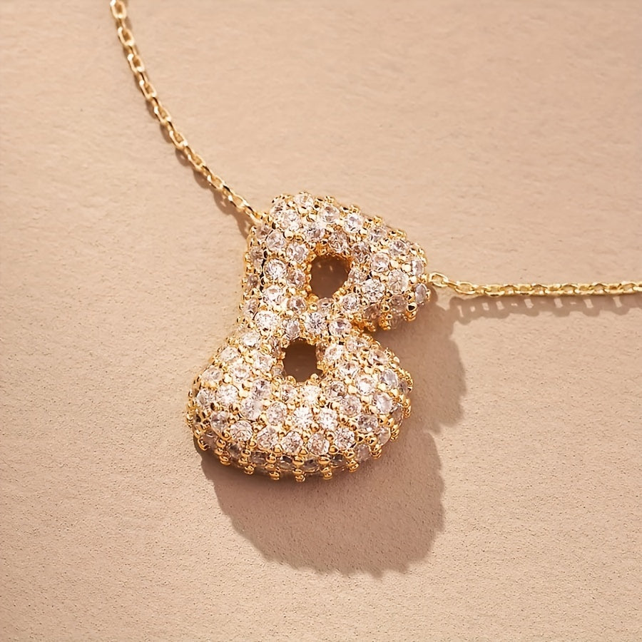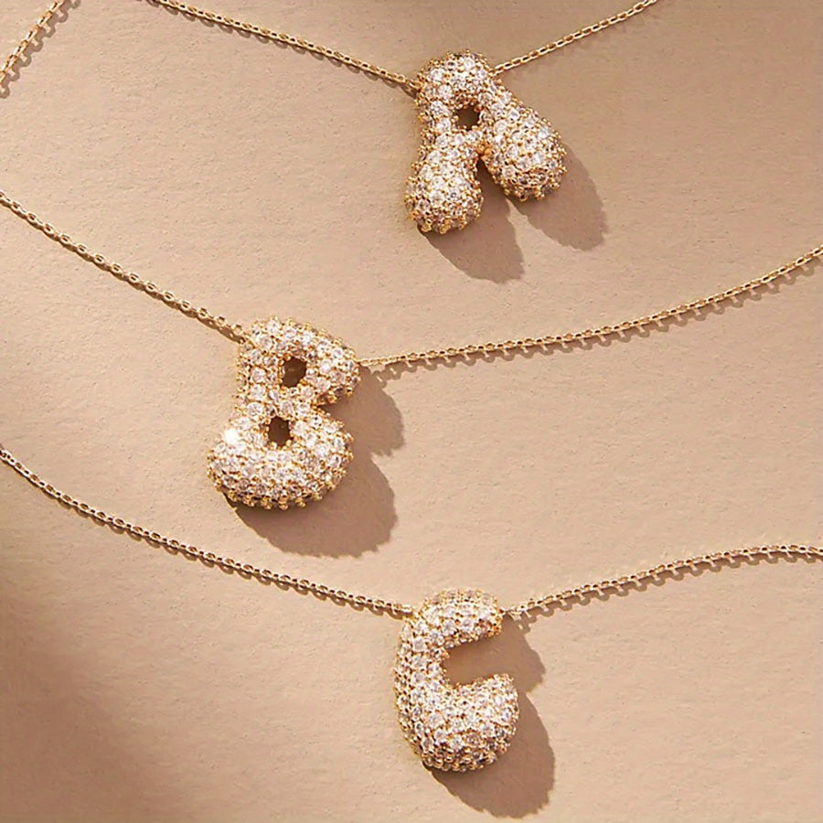 New Trendy European And American Style Necklace Featuring 26 Letters with -Set Zirconia Stones, Crafted from Copper And Plated