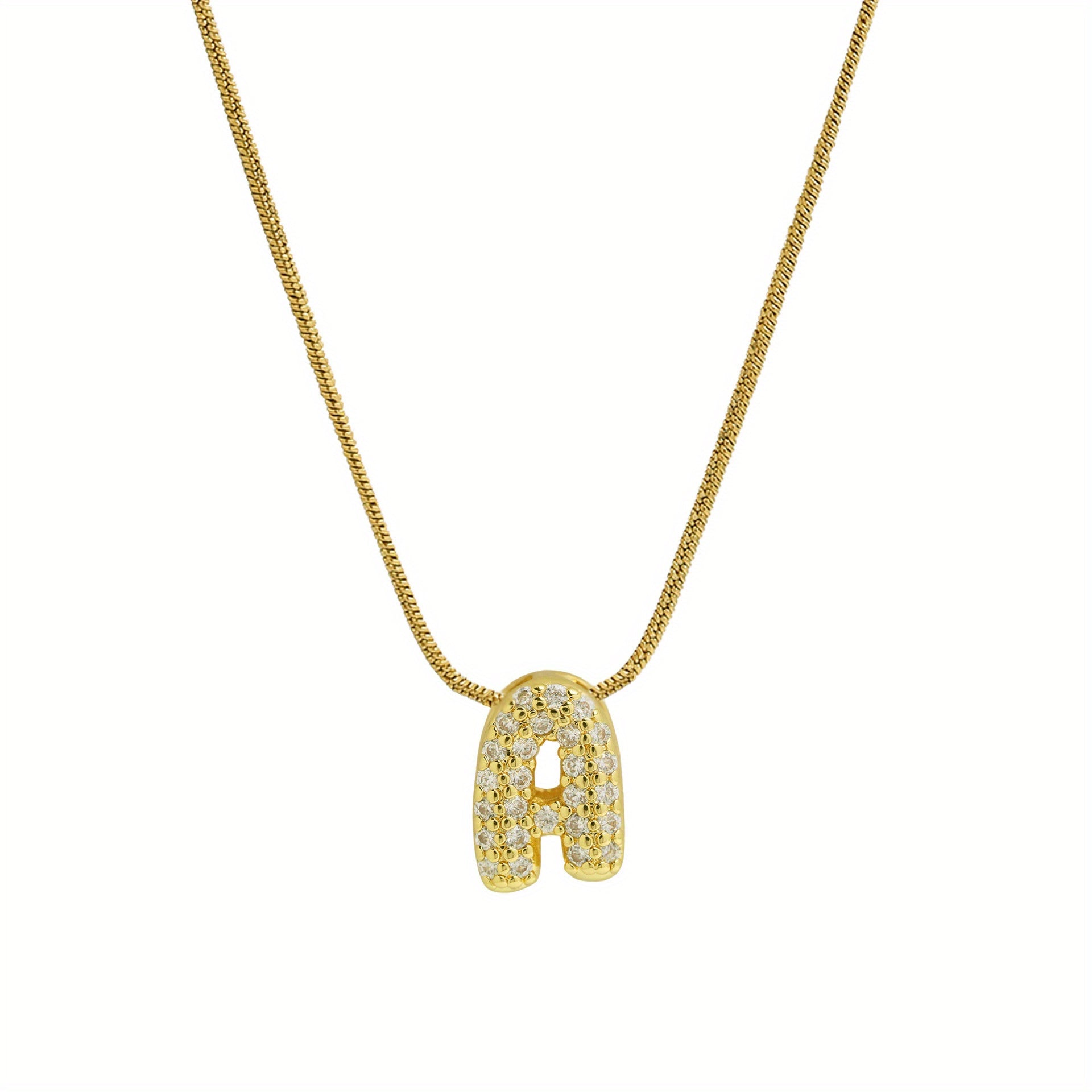 This versatile necklace features a sleek stainless steel round snake chain for a modern, stylish look. Finished with 18K gold plating and accented with subtle rhinestone details, it adds a cute touch of sparkle while staying easy to wear every day. Lightweight and comfortable, it’s perfect for casual outfits or layering with other necklaces.
